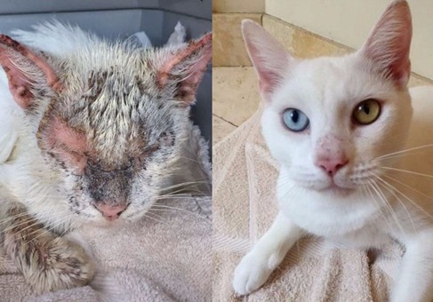 Figura 2 – Alopecia no gato por fungos (dermatofitose) - antes e depois do tratamento