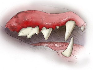Figura 3 – Gengivite pode ser um sinal de infeção vírus da Imunodeficiência Felina (FIV). A gengivite é uma forma leve de doença periodontal caracterizada pela inflamação dolorosa das gengivas.